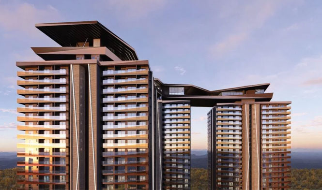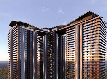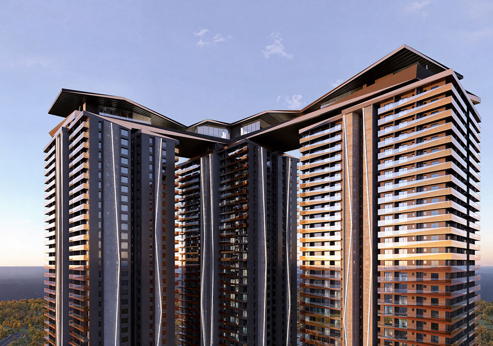 1. Luxury high-rise with 80% open spaces, grand clubhouse, and spacious homes for premium living.