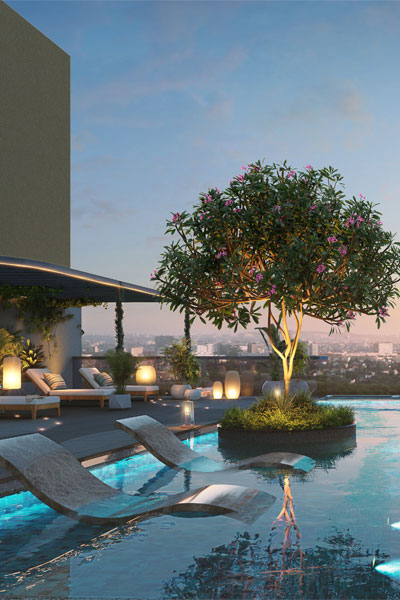 3. 60-floor biophilic tower with iconic clubhouse, 50+ amenities, and ultra-spacious, high-end residences.